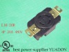 L16-30R UL Approve Generator Socket Outlet 1.NEMAL16-30R 2.4P 30A 480V 3.Safety Standard UL cULs 4.Housing Material:Black Bakelite 5.Cord Clamp Material:Gray Bakelite 6.Blade Material:Brass 7.Terminal Clamp Material:.08"(2)steel-nickel plated 8.Terminal Screw MaterialL:#10-32 Brass(white finish on neutral 9.screw when use)Multi Device 10.Ground Screw Material:#10-32 Brass(green finish)Multi-device 11.Cord Clamp Screw Material:Steel,zinc plated Multi-drive 12.Body Holding Screw Material:Steel,zinc plated Multi-drive 13.Ratings:Molded In or Stamped On 14.Catalog NO:Permanently ink marked on product 15.Dielectric Voltage Withstand:2,000V minimum 16.Current Interrupting:Cerfied for rurrent interrupt at full rate current 17.Temperature Ris:Max rise at full rated current after 50 cycles of overload at 150% of rated current at a power factor of .75. 18.Cord Accommodation:Round portable service cords fo diameters commensurate with the device rating as defined in UL standard 62,CSA C22.2 NO.49 19.Terminal Accommodation:30A#10AWG 20.Terminal Identification:Terminals identified in accordance with UL498(X,Y,Z,White,Green) 21.Operating Temperatures:Maximum Continuous 75C Minimum-40C(w/o impact) 22.Moisture Resistance IP20
